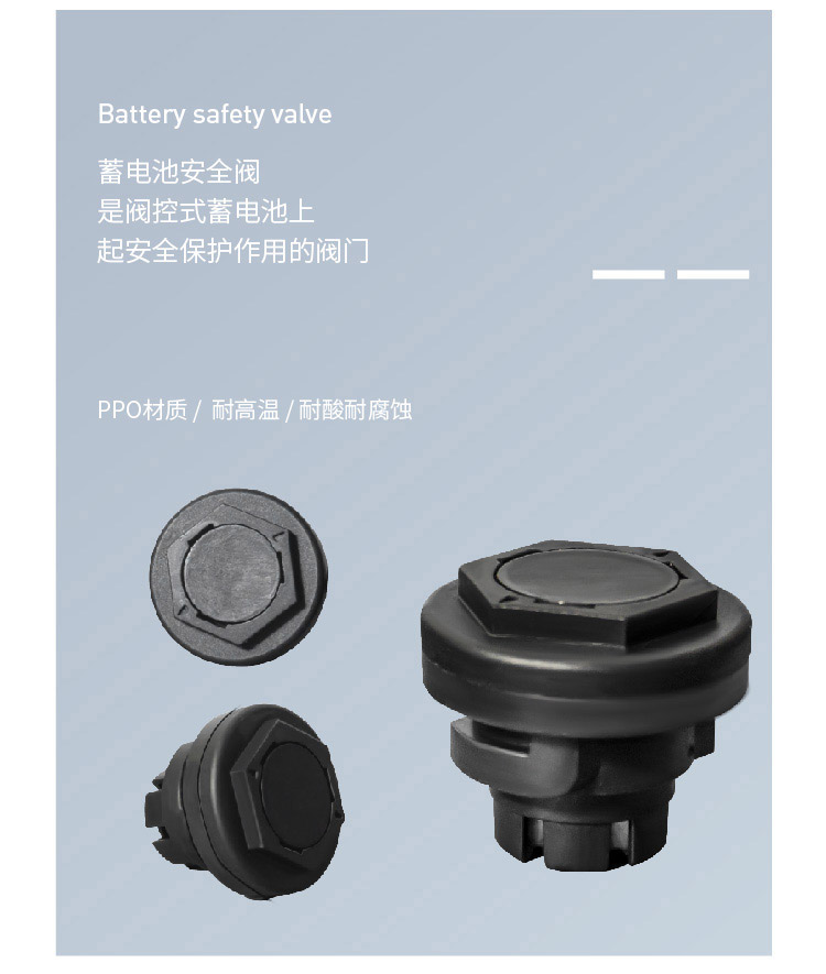 產(chǎn)品介紹蓄電池安全閥又稱蓄電池排氣閥,是閥控式蓄電池上起安全保護作用的閥門。在蓄電池工作時內部反映放出氣體導致電池內部壓力逐漸增加,當壓力到達開閥閾值時,安全閥自動打開排出氣體,在電池內部壓力下降至閉閥閾值后,安全閥自動關閉,同時在此過程中可以防止外部氣體進入電池和電池內酸液濺出。可以避免電池內壓力